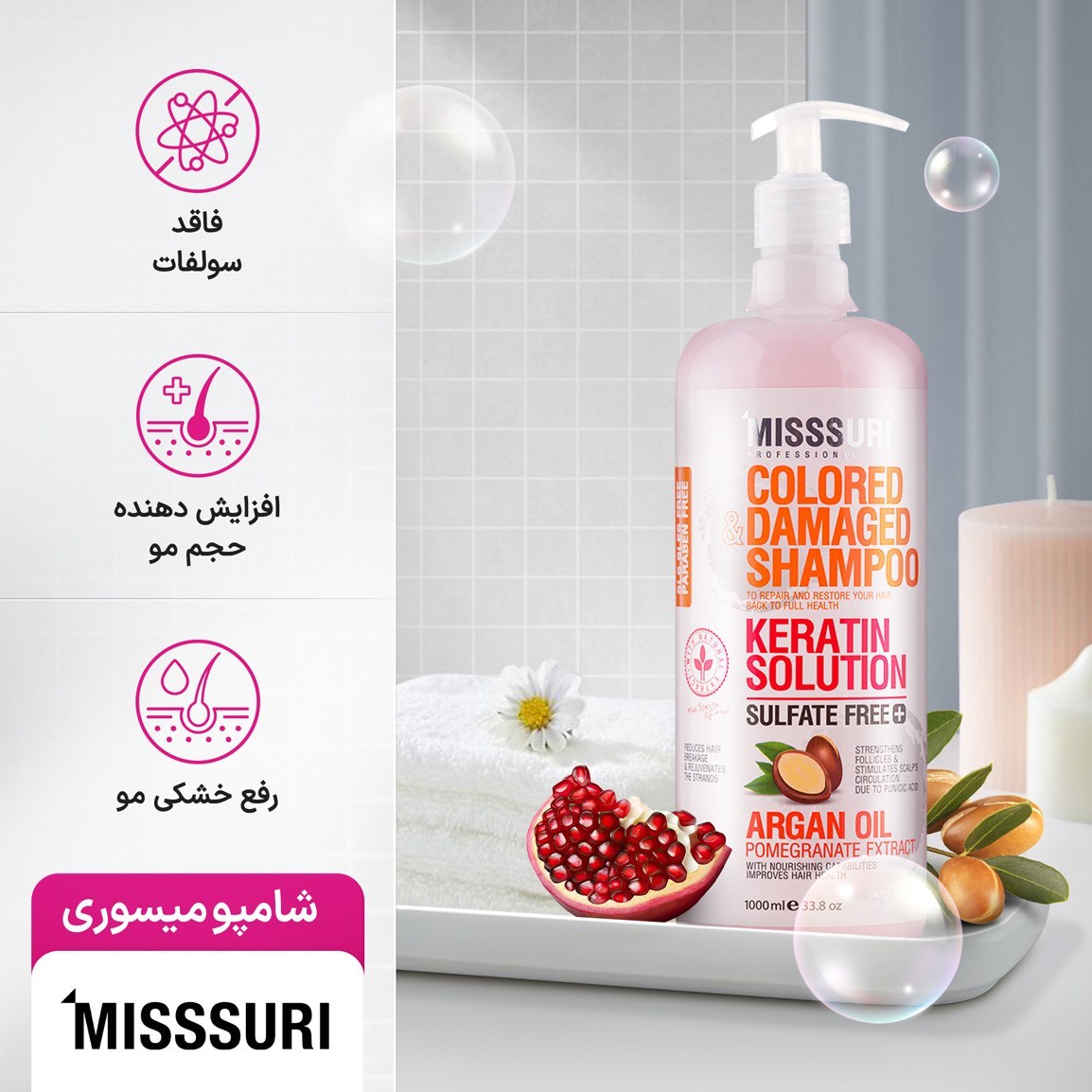 شامپو موهاي رنگ شده و آسيب ديده 1000 ميل آرگان (فري سولفات) ميسوري